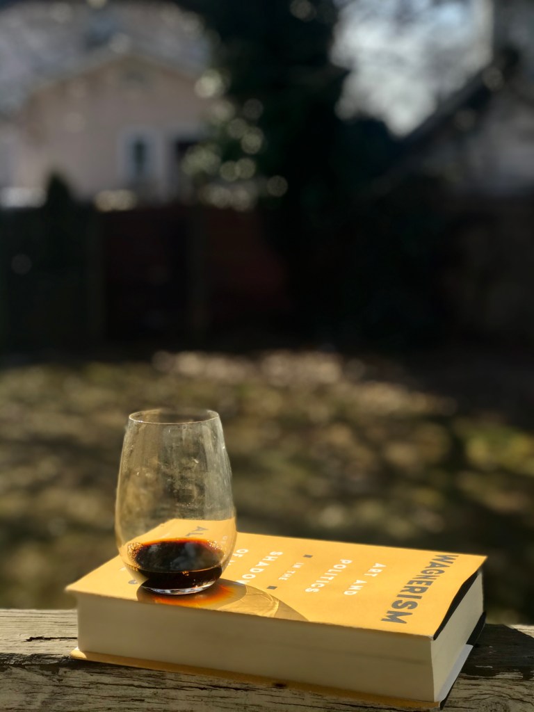 Brooklyn Fare’s Kensington Blend, with bay leaf (no, this is not the rest of a drink; yes, I often allow a limited amount of water through, for that creates a very different palate experience) / “Wagnerism”, by Alex Ross