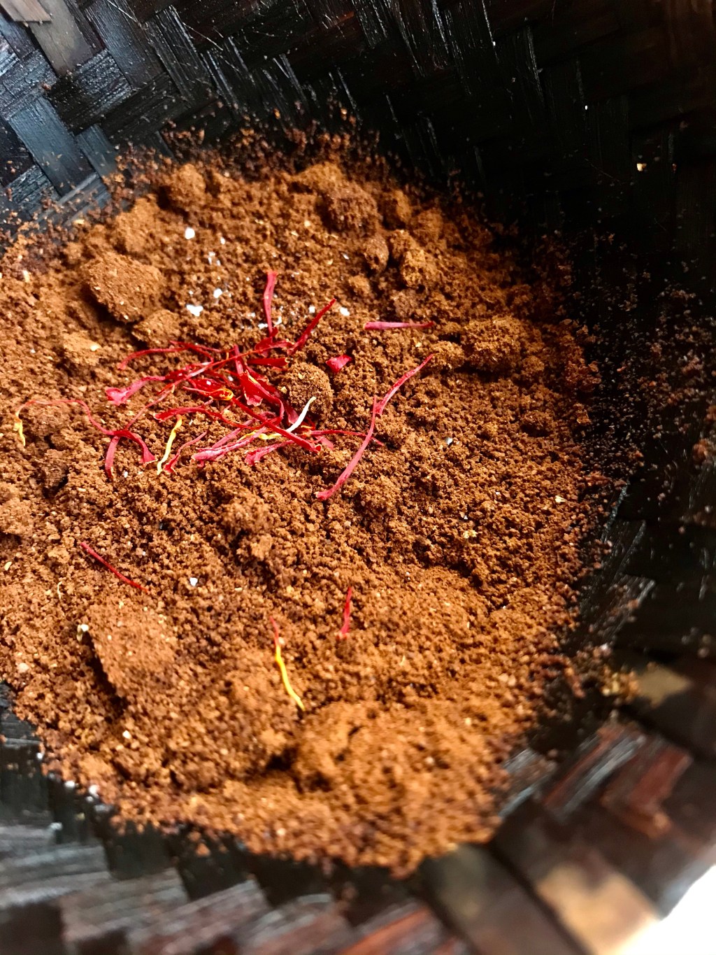 Saffron from La Mancha, Ethiopian coffee, in an Indonesian coffee filter