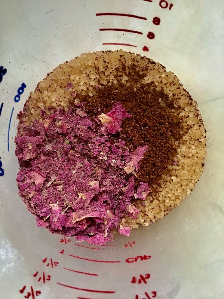 Sugar, coffee, rose petals