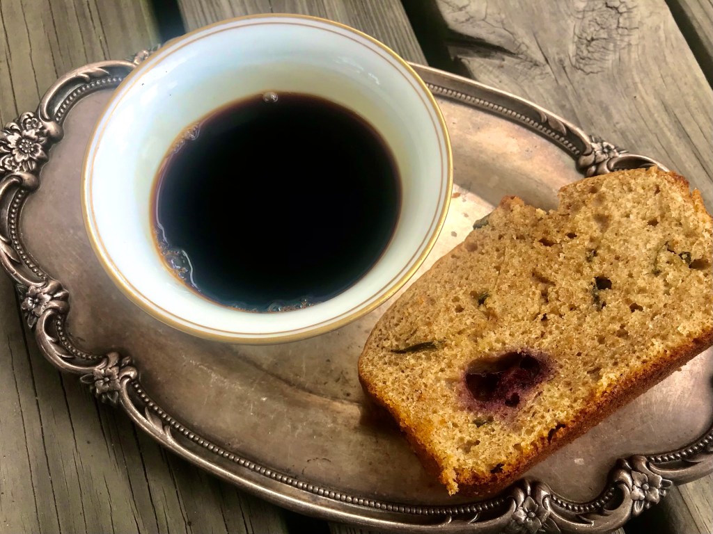 Café Cubano coffee blend, Mayorga, and blueberry basil sweetbread