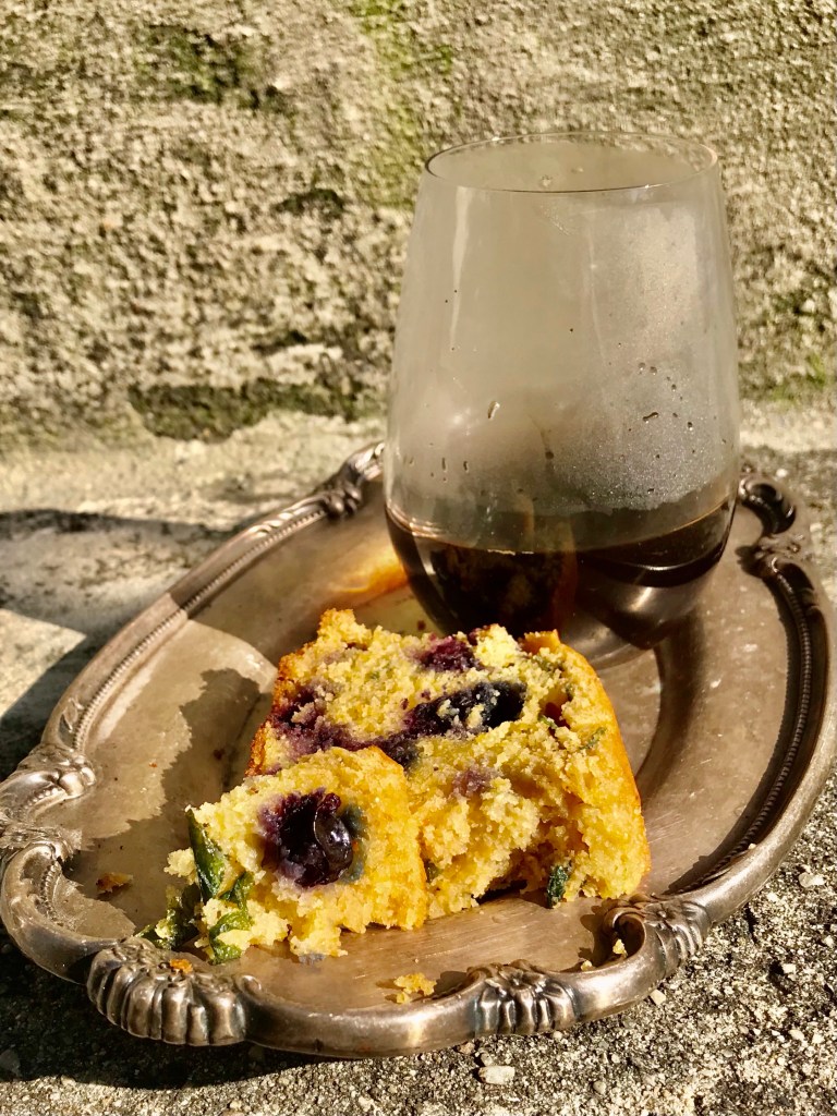 — Cornbread: basil leaves and blueberries — Coffee: The Fixer, Origin, Brooklyn, NY