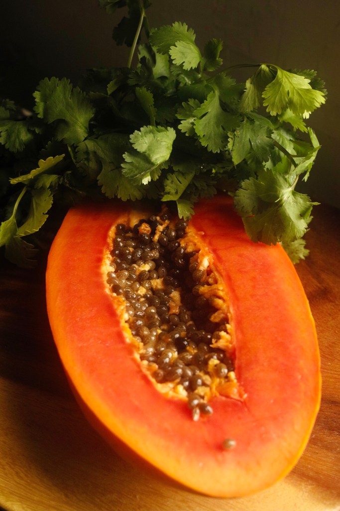 I – the attractive color of a ripe papaya, and the structure of the seeds, as well as the contrast the fruit displays within itself