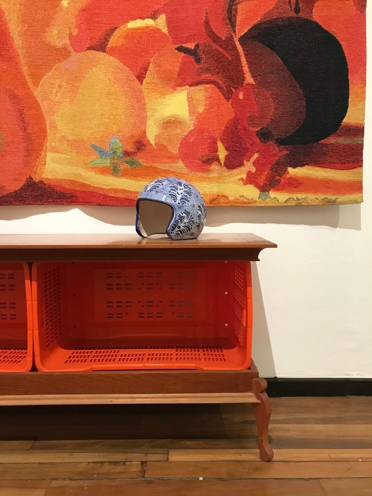 Great cultures have lived and disappeared here. Aside from the greatness we continue to find in Mexico in the world of food, the energy to be artistically creative prevails. In the various museums I have entered these weeks, one of the several pieces that called my attention, is a helmet made out of ceramic. It must pertain somehow to an idea of the artist, Agustín Solórzano, as to what protection is.