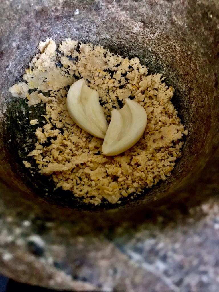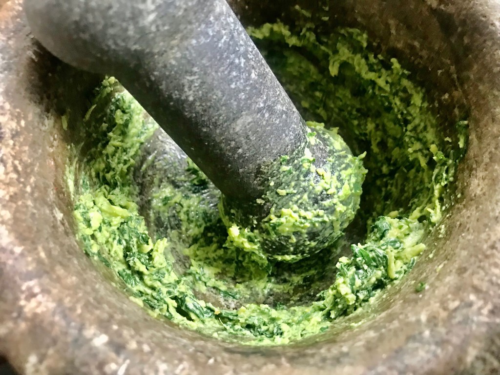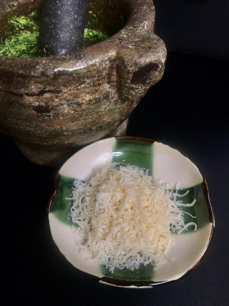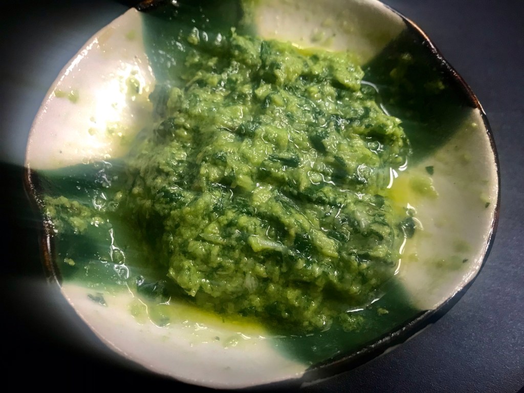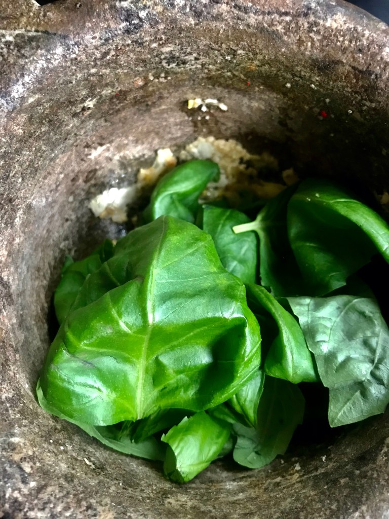 Something in the air while walking through Manhattan, reminded me that I have basil leaves and pine nuts at home. And I am rarely out of olive oils, parmesan, and garlic.