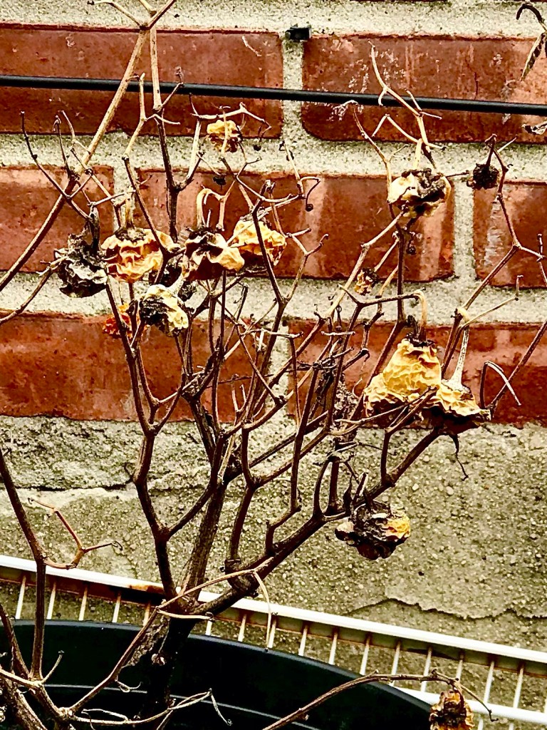 Last summer, many of these edibles were not harvested. They kept changing colors, still hanging, and then fell to the ground, or stayed attached to the plants, becoming dark fossiles, or rotten green and red objects. For weeks, I have been taking several picture shots of this sad view. This week I stopped, once more, and within seconds a lady came out, asking me what I was photographing. I answered that for months I have observed how this year the plants seem abandoned, and see this as a statement which I want to document. She responded that they have been very busy.