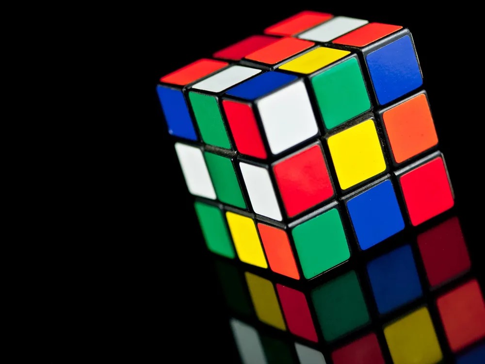 Though media first circulated a story about Rubik designing the cube to help teach students about three-dimensional objects, Rubik himself later acknowledged that he purposefully set out to design a puzzle based on geometry. The 27 tiny cubes called “cubies” produced a truly challenging puzzle. Each carried one of six colors, and when assembled they formed a square. Rubik’s challenge was figuring a way to allow the cubies to slide and rotate alongside one another while holding together as a unit. His key insight lay in realizing that if the individual blocks hinged on a rounded core, they could move freely while maintaining the shape of a cube.