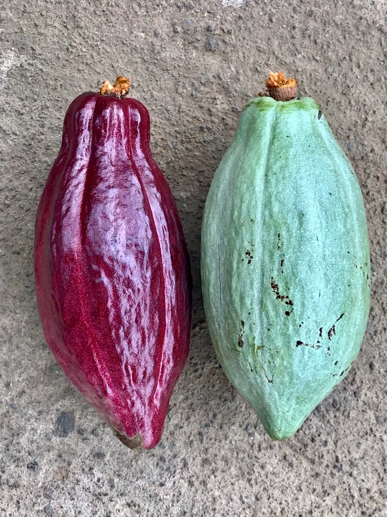 A few days ago I had my very first taste of the cacao fruit. Today I tried the other, less sweet, and with a bright-colored shell.